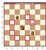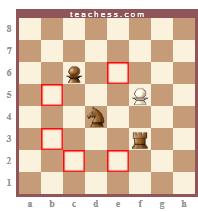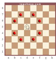 O Cavalo se desloca pelo Tabuleiro da seguinte maneira: uma casa como a Torre e uma como o Bispo, afastando-se da casa de origem.